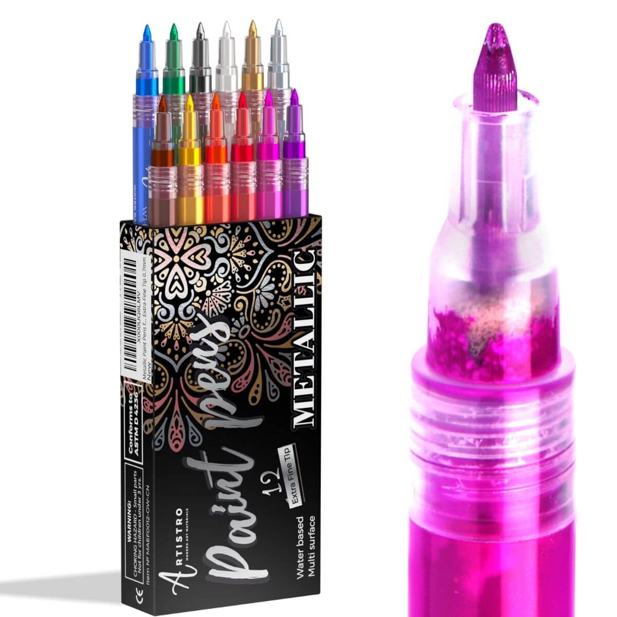 12 Metallic + 12 Glitter + 42 Extra Fine non toxic paint pens
