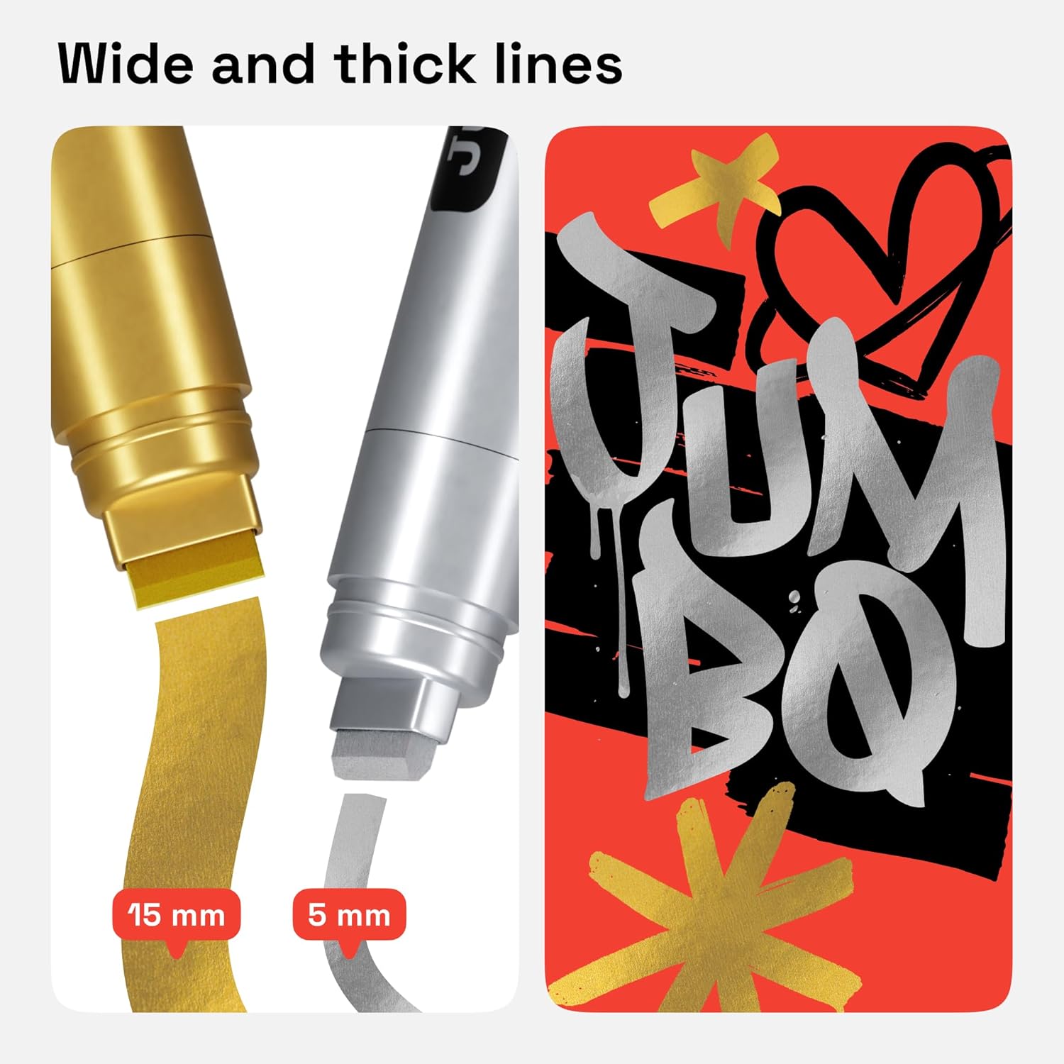 ARTISTRO 2 Gold & Silver Acrylic Paint Markers - 15mm Jumbo-Tip Paint Pens - Perfect for Crafting, Art Projects, & More
