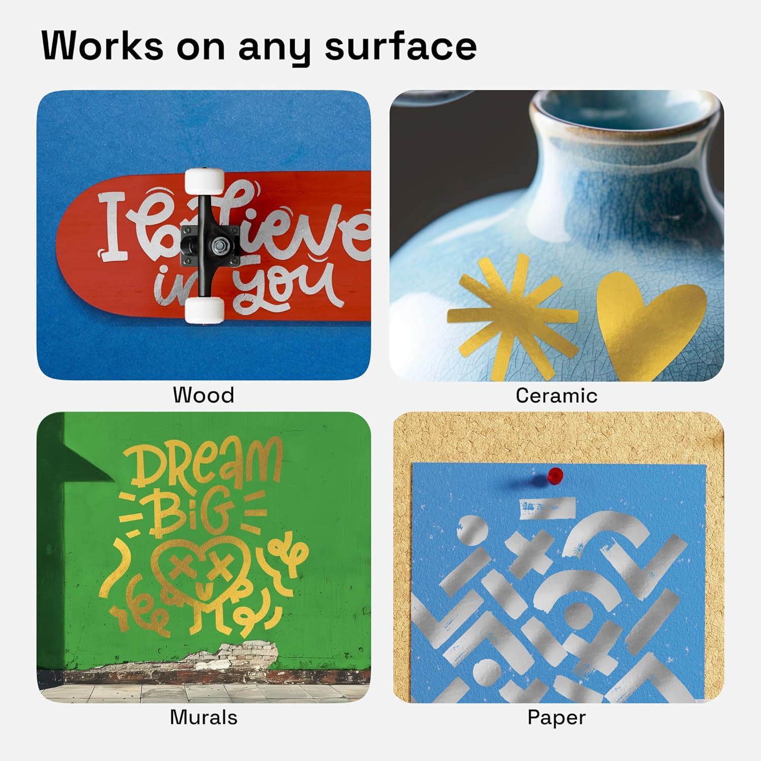 - PREMIUM QUALITY: This Artistro 2-pack of Jumbo Gold & Silver acrylic paint pens utilizes vivid, acrylic ink that dries quickly to produce a durable opaque and glossy finish on any surface. Each acrylic paint pen is equipped with Italian ink and a durable Japanese nib.