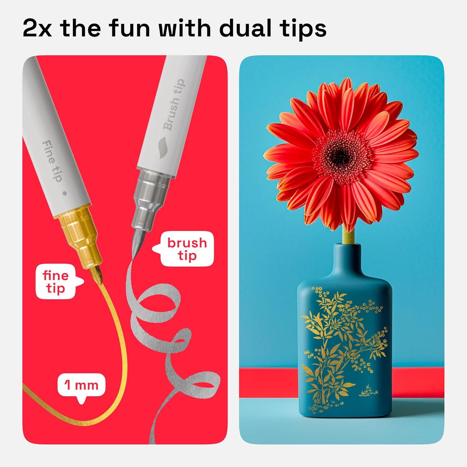 - DUAL TIP: Our rock painting pens come with 2 tips for 2x the fun. The paint pens fine tip are equipped with a 1-5 mm brush tip and a 1mm fine tip. Get the most out of your paint pens acrylic markers with dual tips!