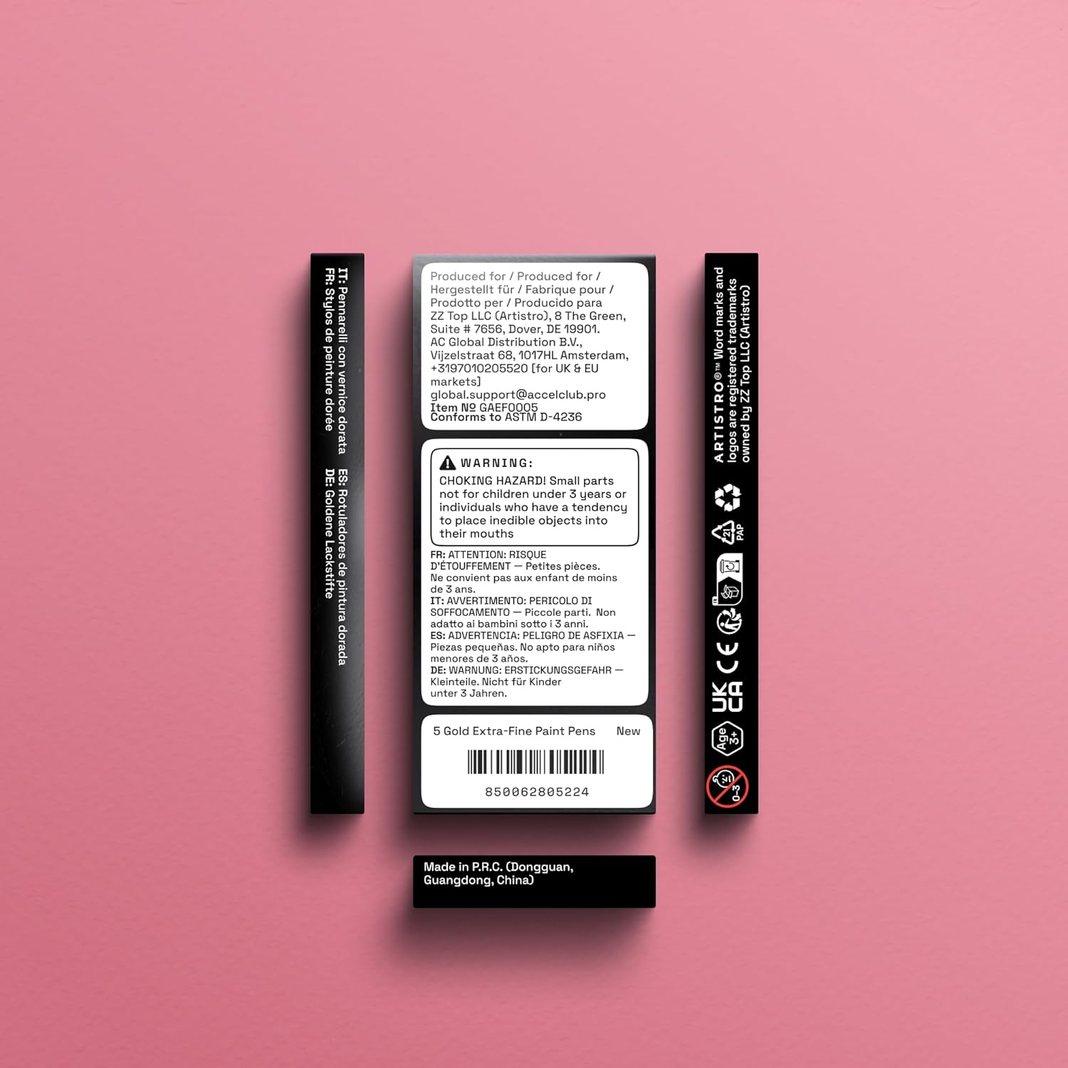 ARTISTRO 5 Gold Paint Pen for Glass Marking, Rock Painting, Ceramic, Wood, Tire, Fabric, Metal, Canvas - Set of 5 Acrylic Paint Markers Water-based - Extra-fine Tip