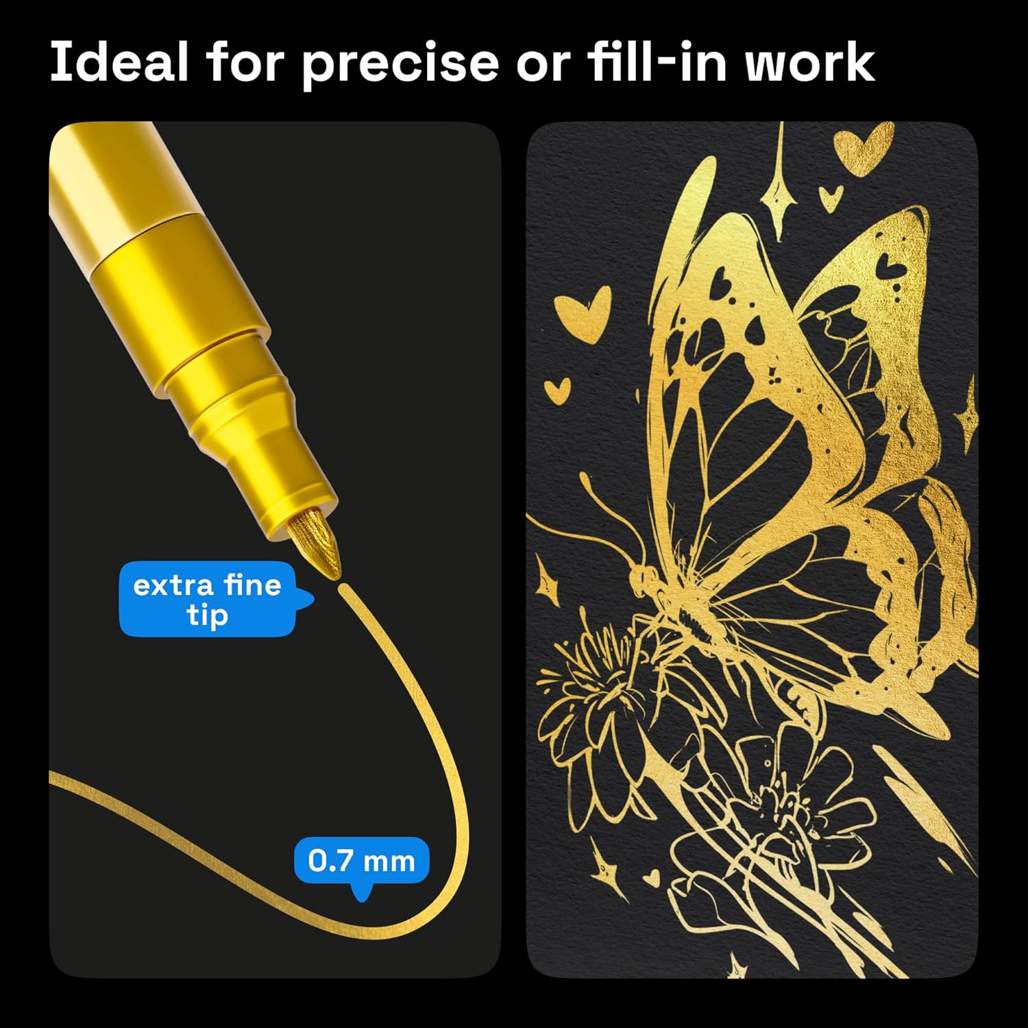 - 0.7 mm Extra Fine Tip: Use our fine-tip paint pen to highlight details in your artwork. The paint pen's fine tip is excellent for marking glass and touch-ups. Create masterpieces with these art pens.