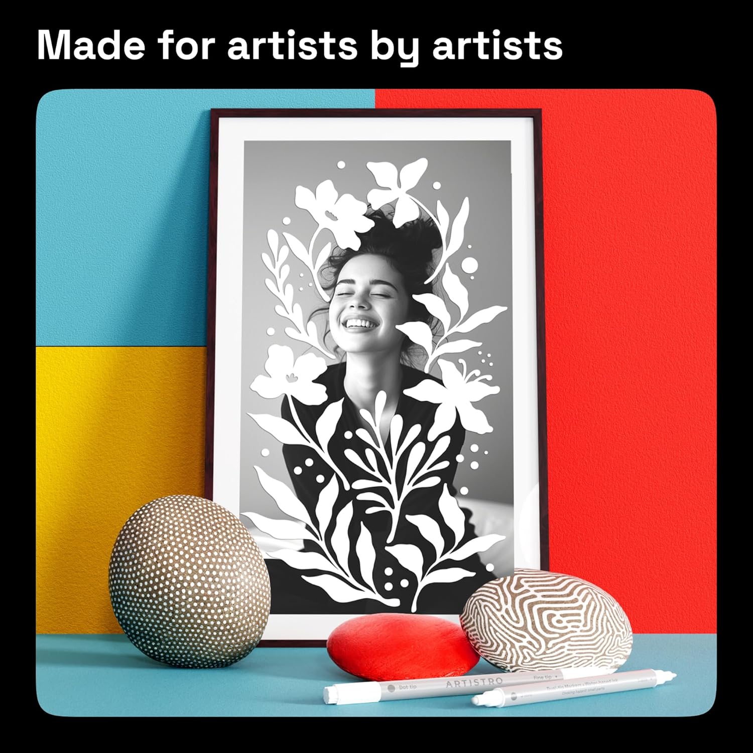 ARTISTRO 5 White Dual-Tip Acrylic Paint Pens for Rock, Ceramic, Glass, Wood, Fabric - White Markers for Acrylic Painting, 5mm Dot + 1mm Fine Tips