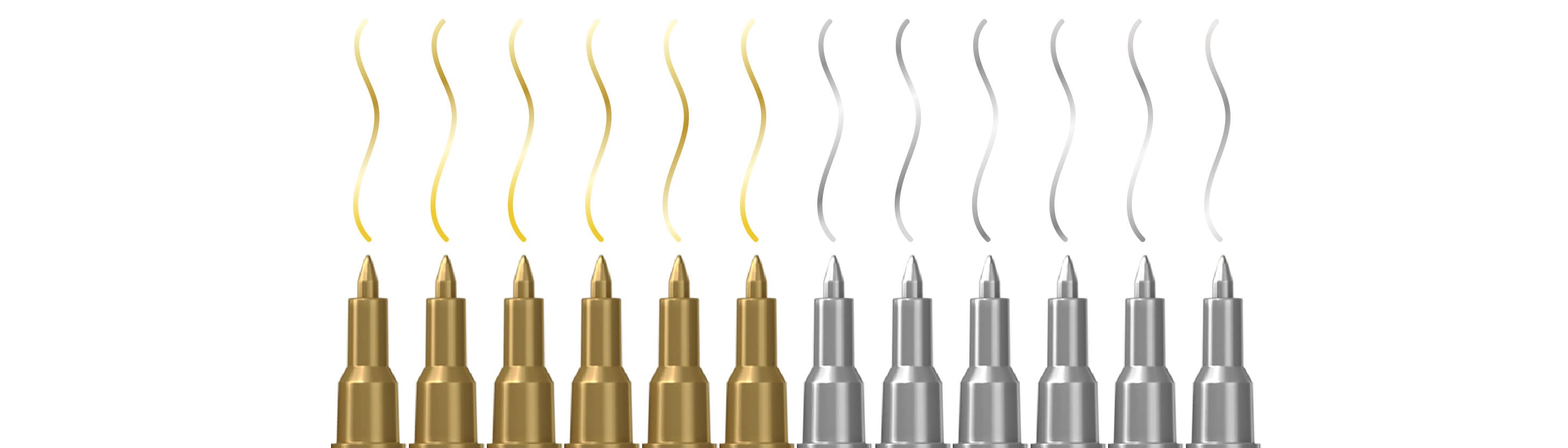 Create magic in gold and silver paint pen. We have created this compact set of gold and silver ink pens for metal specifically to give you the opportunity to create unique projects, framed by a magical confetti in gold and silver fabric markers. This gold & silver paint marker set includes 6 magical gold markers and 6 sparkling silver paint pens for your convenience.