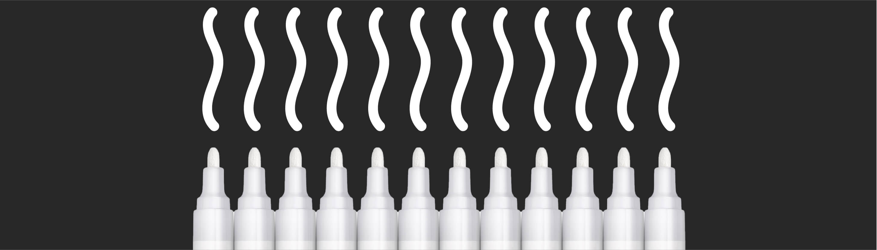 Intense white color. This white acrylic pen guarantees high-quality and even ink application from the first layer. You get a bright and glossy color the first time you apply the white acrylic pen, saving you money on white acrylic paint pen. Experience the amazing glossy effect of these best white marker on dark surfaces and see for yourself.